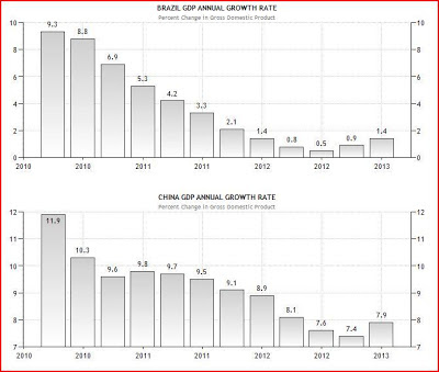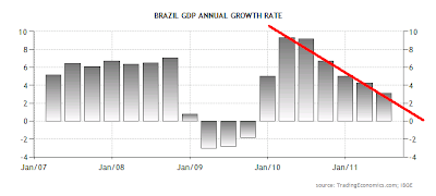 O crescimento baseado no consumo e na re-distribuição, no curto prazo pode parecer que dá frutos mas, muito mais cedo do que julgam os esquerdistas, transforma-se num pesadelo. AS manifestações em São Paulo traduzem que as pessoas pensavam que vinha aí o maná mas a realidade está-se a transformar na estagnação económica.