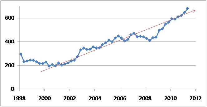 Com a inflação do Euro, os preços relativamente aos nossos parceiros do euro, diminuiram em termos reais para 86.72€/u (a preços de há 5 anos), menos 13.38%.