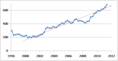 Fig. 4 - Evolução do número de pessoas desempregadas (dados: