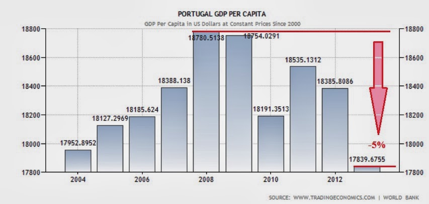 Esta correcção foi acompanhada (até finais de 2012) por uma contracção do PIB per capita de 20%, quatro vezes a nossa perda..