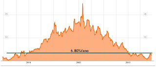 A Grécia já tinha um spread muito mais elevado, de 12.5%/ano (não cabe no gráfico).